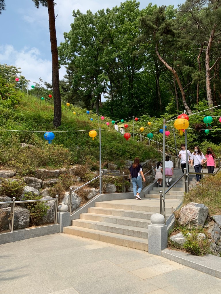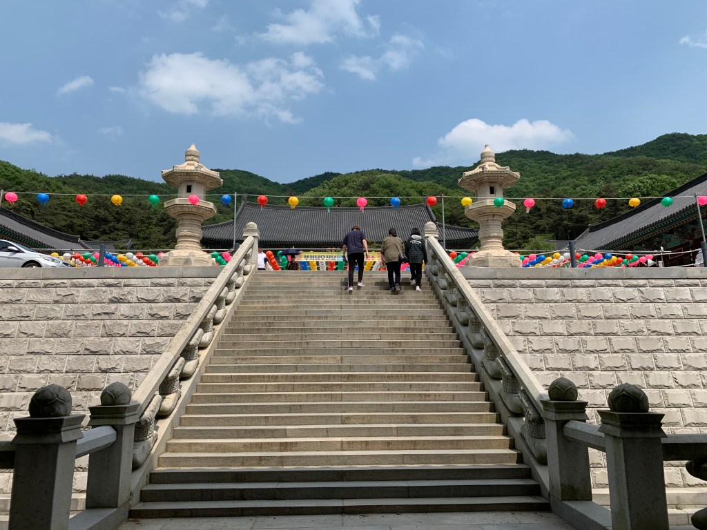 There are about 6 different temple buildings at this location. Some are for worship, while other buildings are for the monks to use who live at the site. We only went up the one main worship temple that has the 3 Buddhas inside it, but we did not go inside. Unlike the temple we went to in Seoul where you could not see inside from the outside, this one had it’s windows open and everything was in plain view. I learned in Seoul that you are not supposed to take pictures inside the temple, so even though we were outside, I still did not feel comfortable to take pictures of the inside. I wanted to respect their religion and culture.
