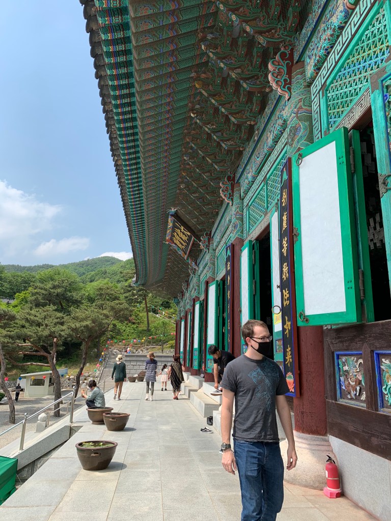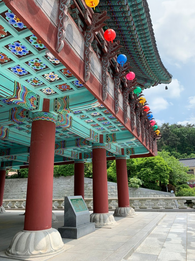 Last Saturday, we decided to take a day trip to Gakwonsa Temple. It is about a 30 minute drive from Camp Humphreys. With it being the first official weekend that we were able to travel the peninsula since February, we knew we wanted to go somewhere exciting. This temple did not disappoint. It is a buddhist temple in Cheonan. Just like the temple and palace we visited in Seoul, I fell in love with the architecture and colors that are used.