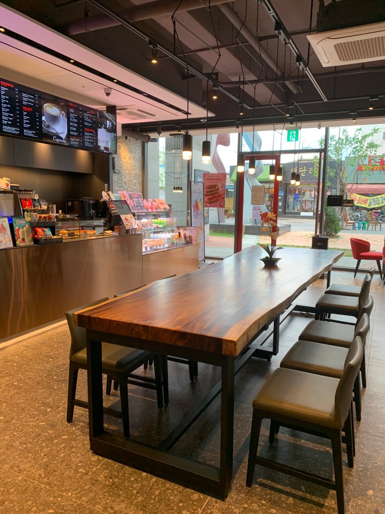 After dinner, we took Kerri home and got to explore a new area as she lives with her parents out in a rural area. On the way home, we passed a coffee shop that we pass whenever we go to Daiso, but had never been in. We decided to stop and try it out. It was very fancy looking inside, and the waffles they had looked amazing. I wasn’t impressed with my coffee, but Buddy loved his.