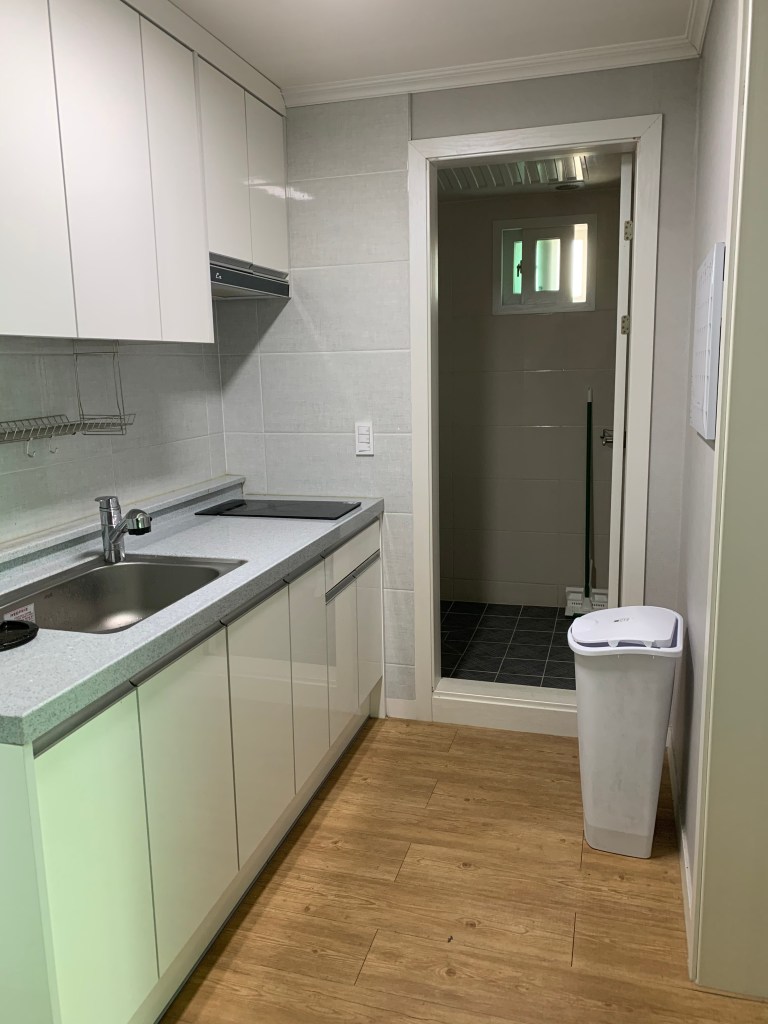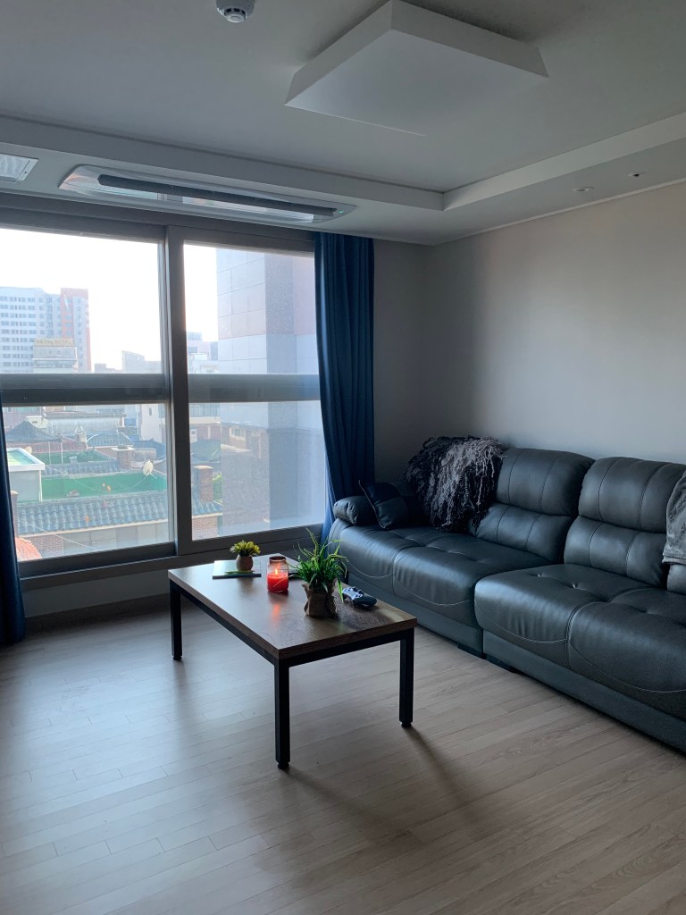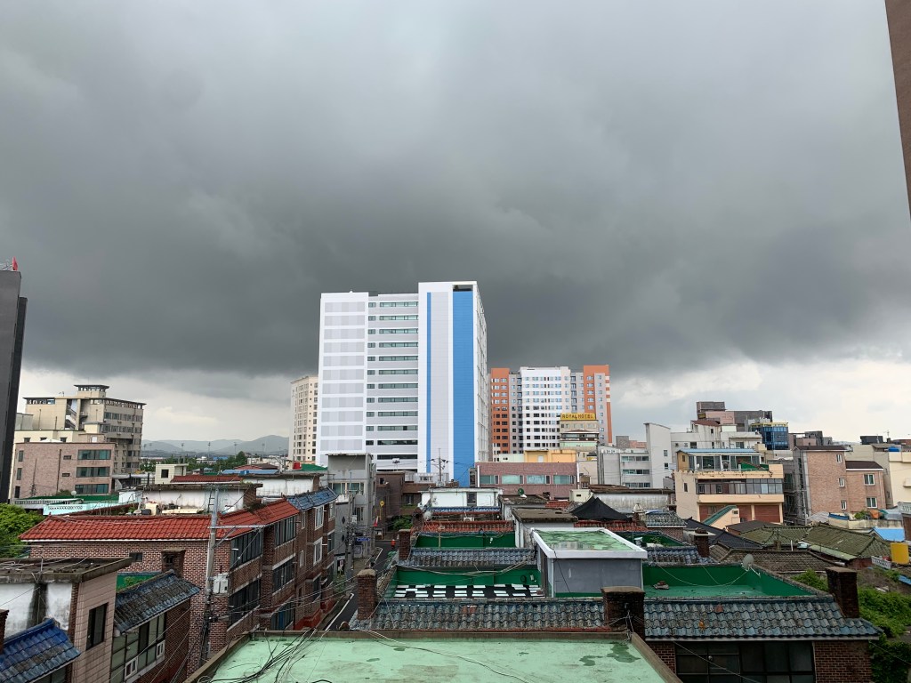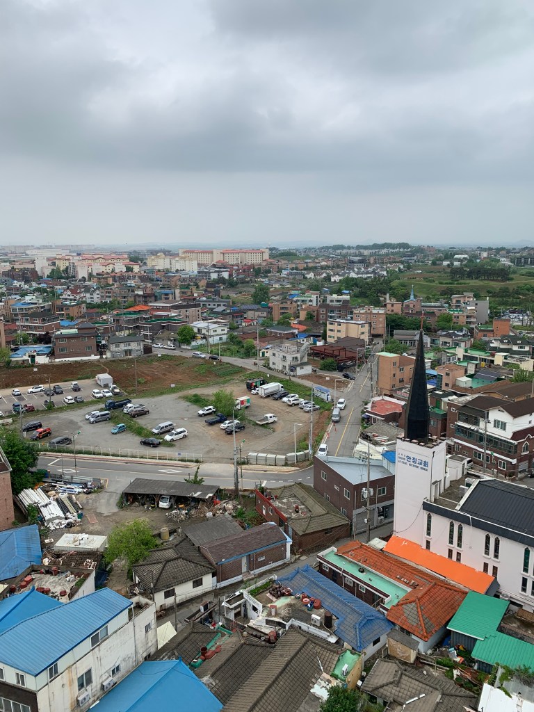 We’re on the third floor, although it is technically the first floor of residential apartments. The first two floors have businesses, a cafe, and a restaurant. If you take the elevator to the top floor, 14, you can take a staircase outside to the roof. There is an amazing view of Pyeongtaek and Camp Humphreys from the top. We love going up there and just sitting there talking, especially at night seeing all the lights. There are places to grill up there and have fire pit fun. The best part is not paying attention and then having puppies/dogs run into you while they’re up there.